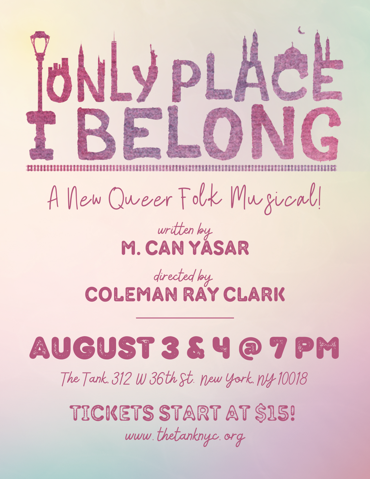 Only Place I Belong is the journey of a young Turkish-immigrant man in search of love, identity, and belonging in America for the first time. The story follows Can (pronounced “John”) through a rebellious attempt to offer his truest self to the world, his family, and to himself. As Can moves from Turkey to New York, we follow his heartbreaking, sexy, and unforgettable encounters, as he finds the soul he thought he lost – his voice and music. With a score of original indie/folk songs blended with unmistakably-New York stories, this new musical feels like a late-night train ride that you won’t want to end.